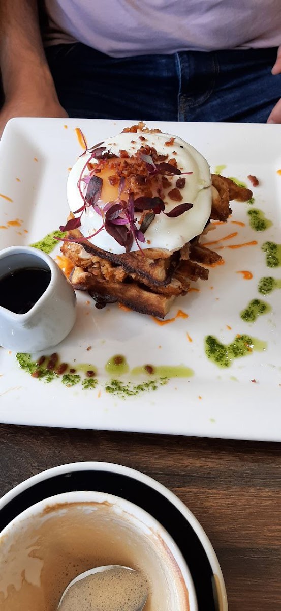 The menu balances classics with a few specialty items that resonate with local tastes and comfort food cravings: chicken and waffles sit alongside staple eggs Benedict with salmon, while pancake stacks—both traditional and with twists like Biscoff—give a nod to those with a sweeter palate. There's a thoughtful selection for kids too, from simple cheese burgers to vegan options, which makes this a practical choice for families.